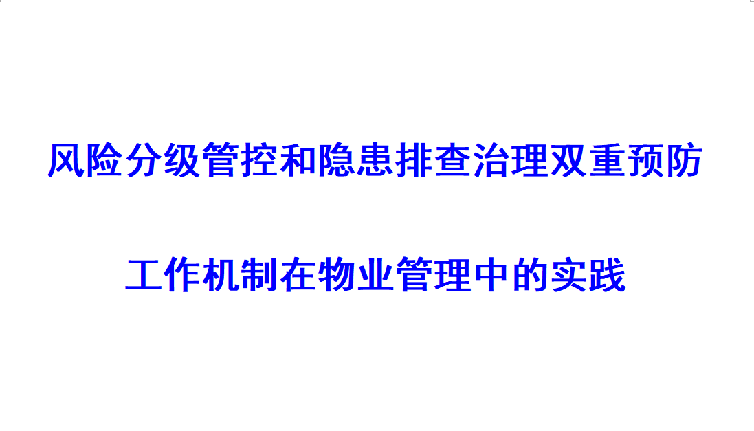 • 風險分級管控和隱患排查治理雙重預防工作機制在物業管理中的實踐 [2021-01-22]